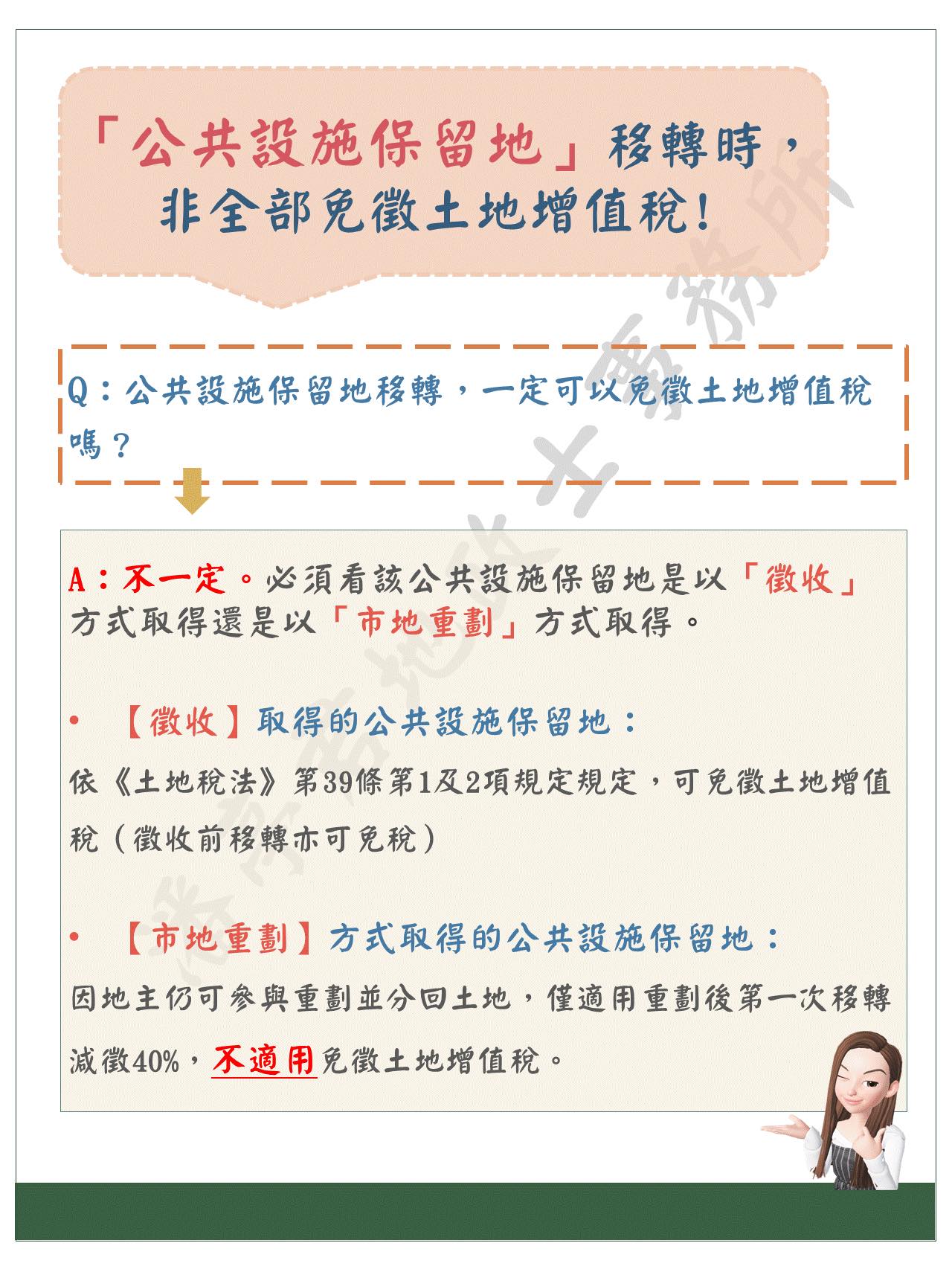 【公共設施保留地】移轉時,並非全部免徵土地增值稅